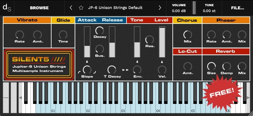 Ah yes the Roland Jupiter-6. It looks like techno. It sounds like techno. It's also pretty good at other stuff too, like strings. That's what this Decent Sampler instrument and sample library is leaning into.