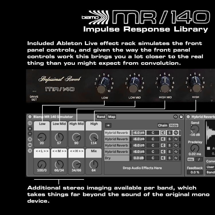 For Ableton Live Suite owners, there's an included audio effect rack that models the behavior of the original unit by convolving each band separately in parallel, which allows you to blend the four bands the same way as you would with the hardware. Honestly I was surprised with how well this actually works!